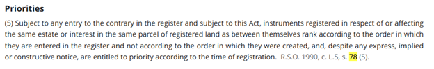 78(5) 如果房子有多个注册贷款,那最新注册的贷款有优先权,之后注册的贷款会排在之前注册贷款的后面。也就是说,第一个注册的贷款是第一优先权,第二注册的贷款是第二优先权,等等。